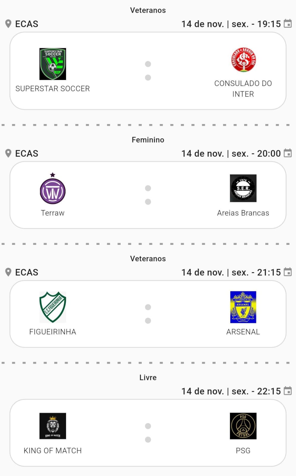 A noite de domingo foi marcada por confrontos importantes e resultados que consolidam o bom desempenho das equipes na competição. Na categoria Veteranos, o time do Figueirinha garantiu uma vitória expressiva ao superar o Consulado do Inter com o placar de 5 a 2. Piolho(2x), Guilherme(2x) e Adriano fizeram os gols da Figueirinha e Darlon e Fabiano para o Consulado do Internacional.